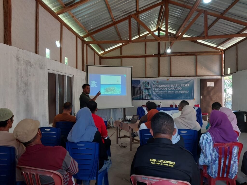Diseminasi ini merupakan bagian dari upaya penyebarluasan hasil penelitian mengenai kondisi tutupan karang di perairan Negeri Liang, Maluku. Melalui sesi pemaparan data, diskusi bersama Pemerintah Negeri, Saniri, masyarakat, nelayan dan kelompok perempuan serta visualisasi kondisi ekosistem terumbu karang, kegiatan ini diharapkan dapat meningkatkan pemahaman serta mendorong keterlibatan aktif masyarakat dalam melestarikan ekosistem terumbu karang.